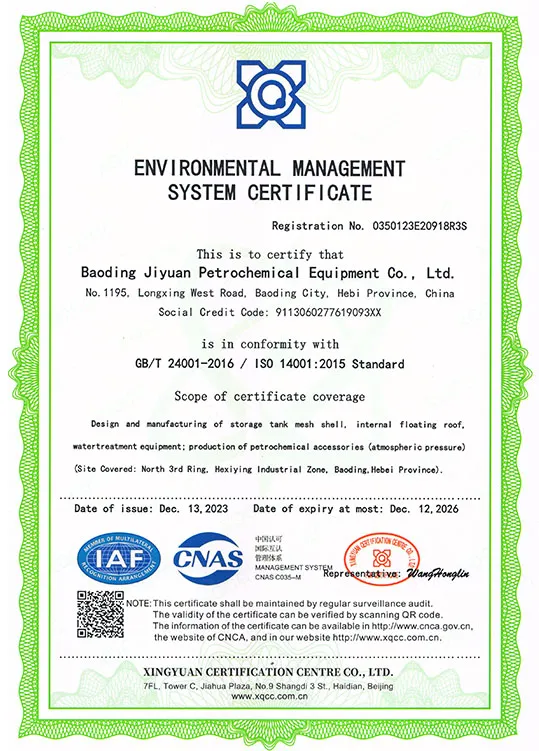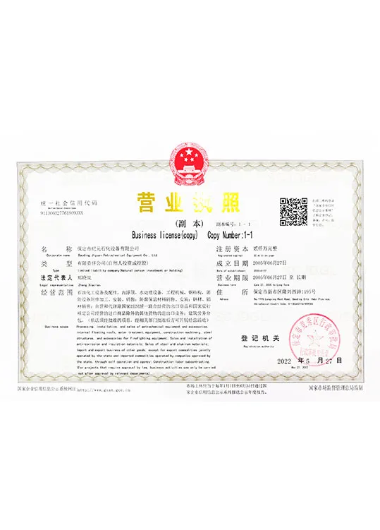 ООО Баодин Цзиюань Нефтехимическое Оборудование было преобразовано из бывшей монтажной бригады нефтебаз Торгового отдела провинции Хэбэй, фабрики «Уци», обладает долгой историей, сильными техническими возможностями, передовым производственным и контрольным оборудованием, а также полной системой гарантии качества. Это комплексная компания, объединяющая проектирование и разработку, производство и продажи, управление и обслуживание, монтаж и строительство.